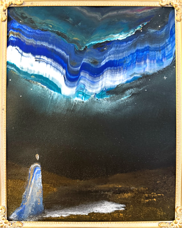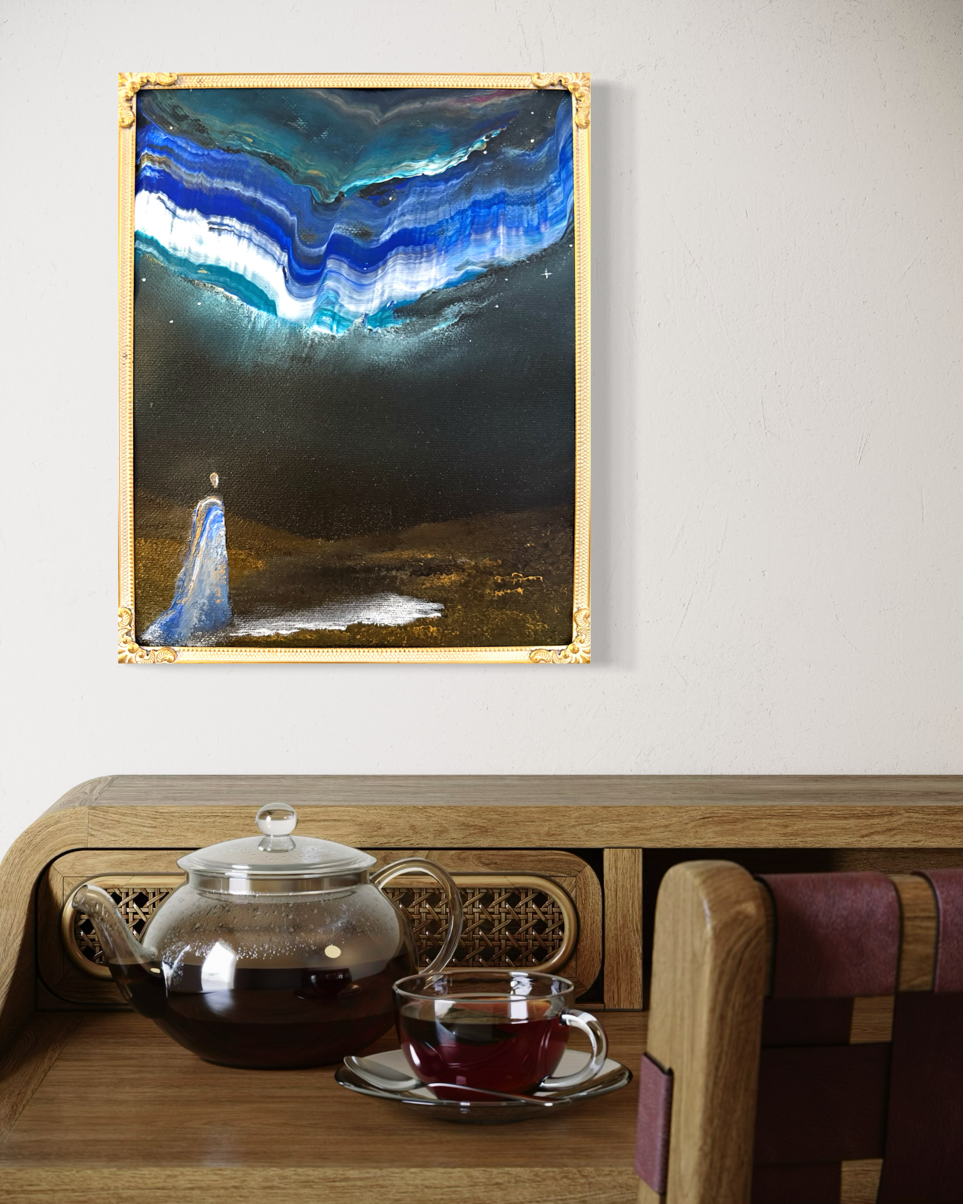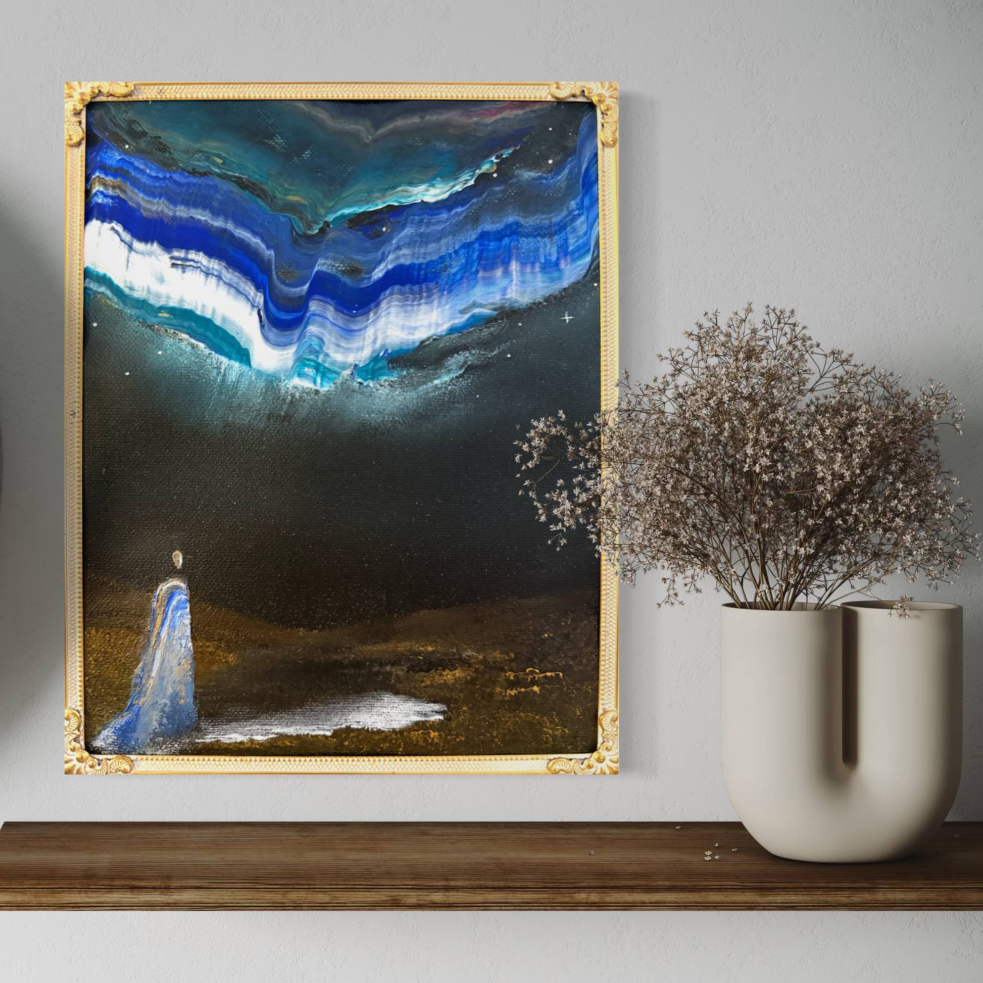 This art piece comes with its unique vintage frame and is painted on 100% linen canvas.