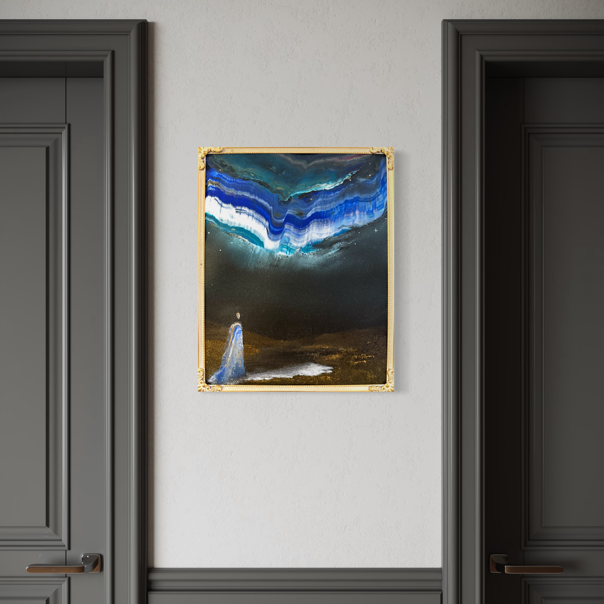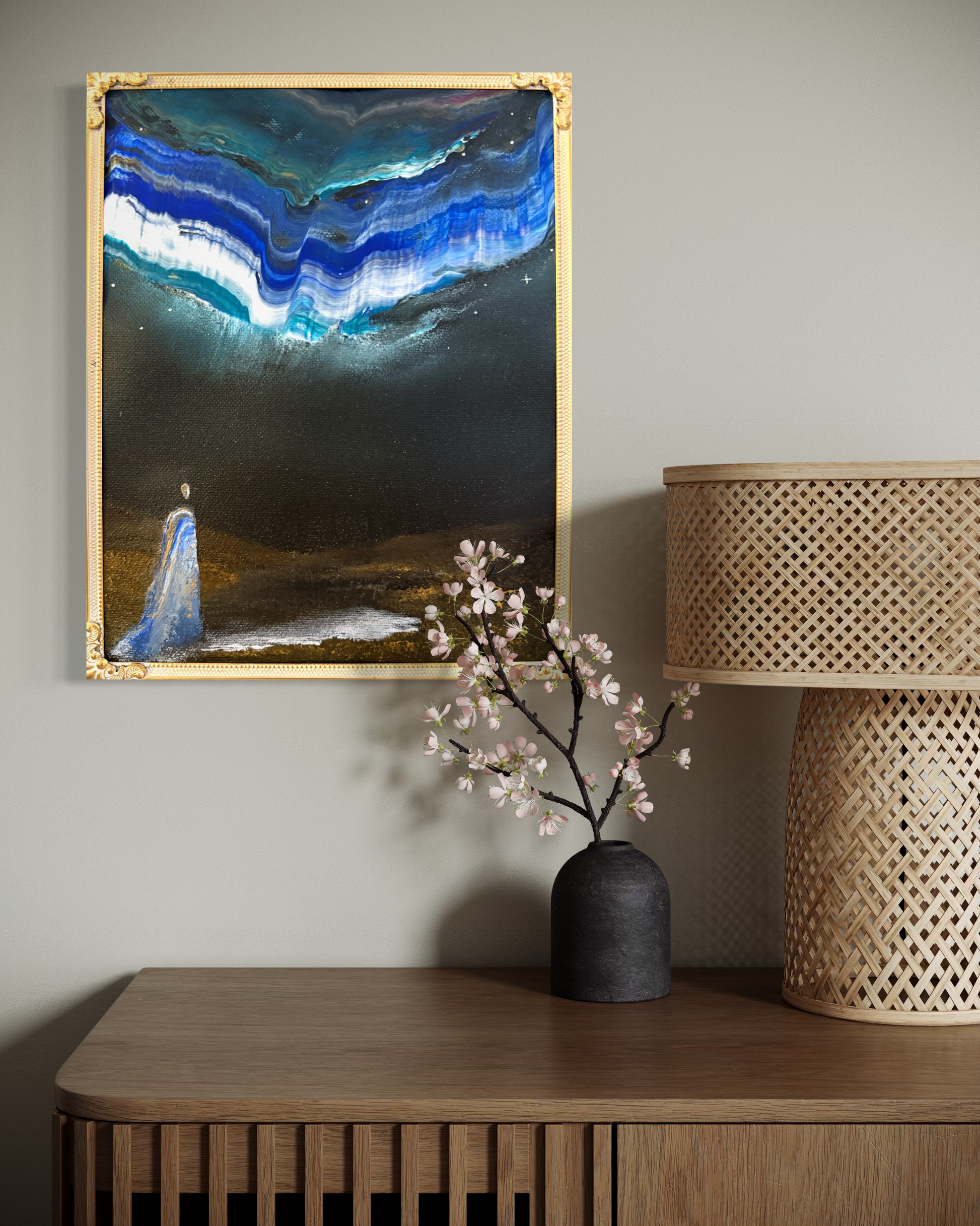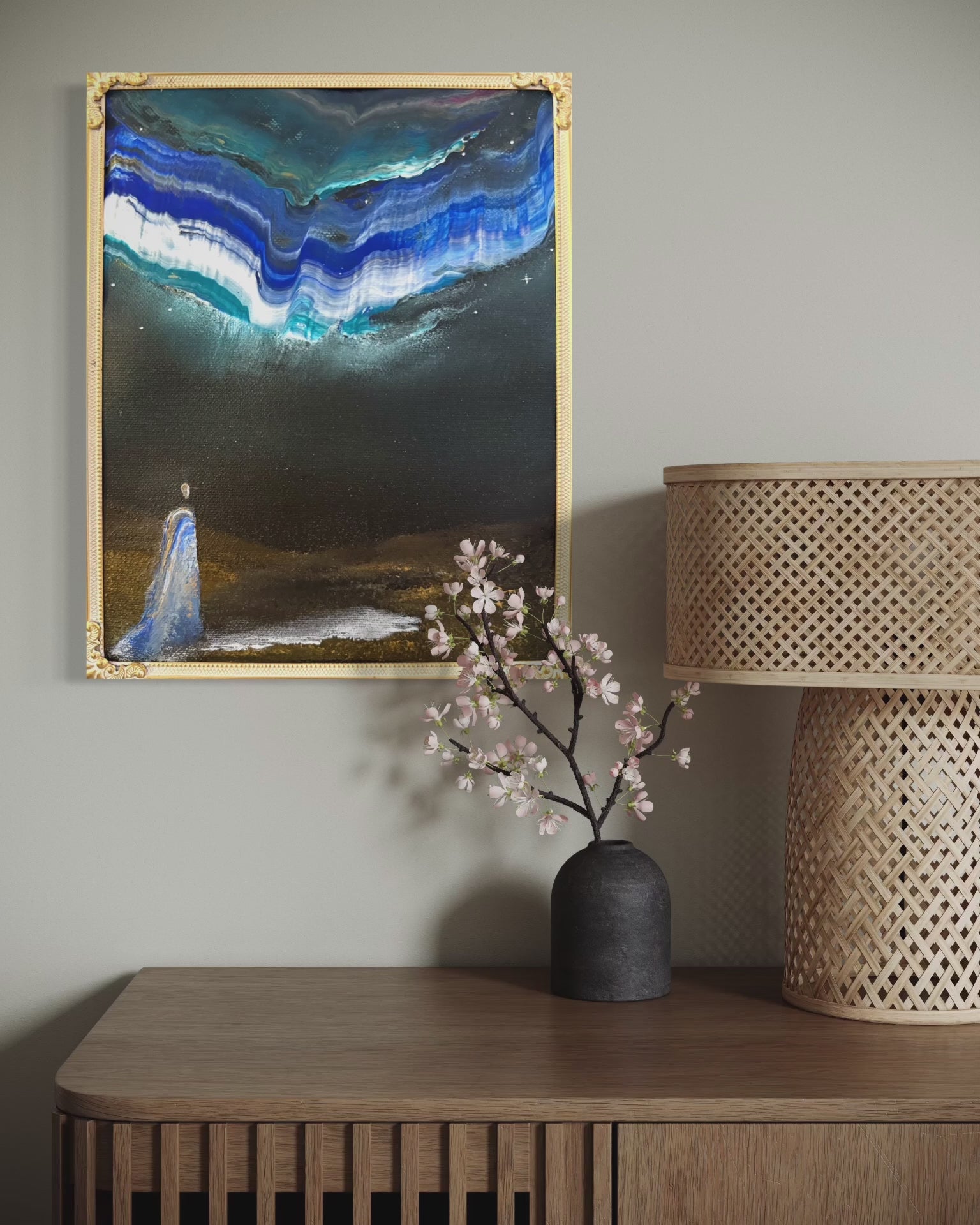 This art piece comes with its unique vintage frame and is painted on 100% linen canvas.