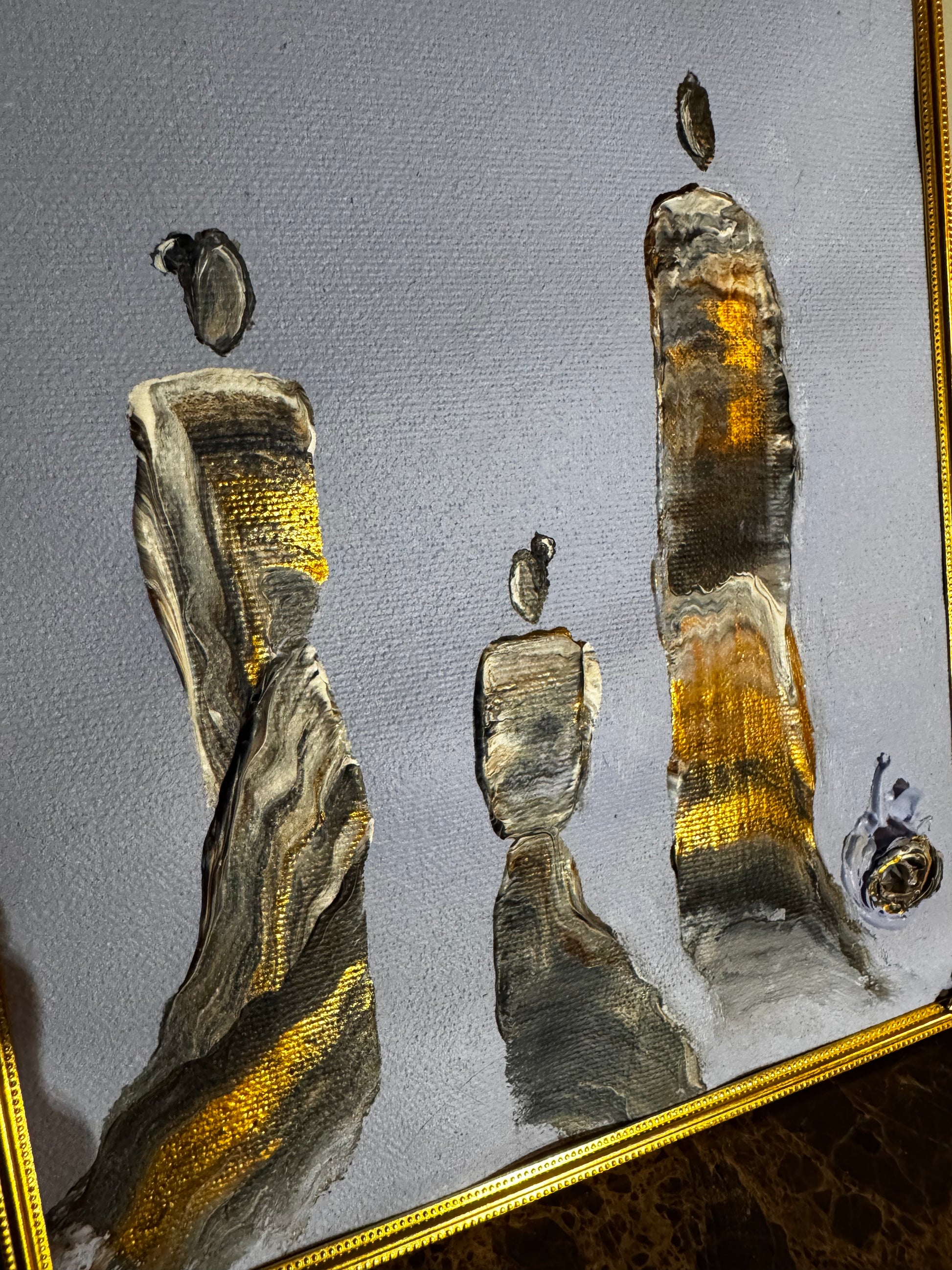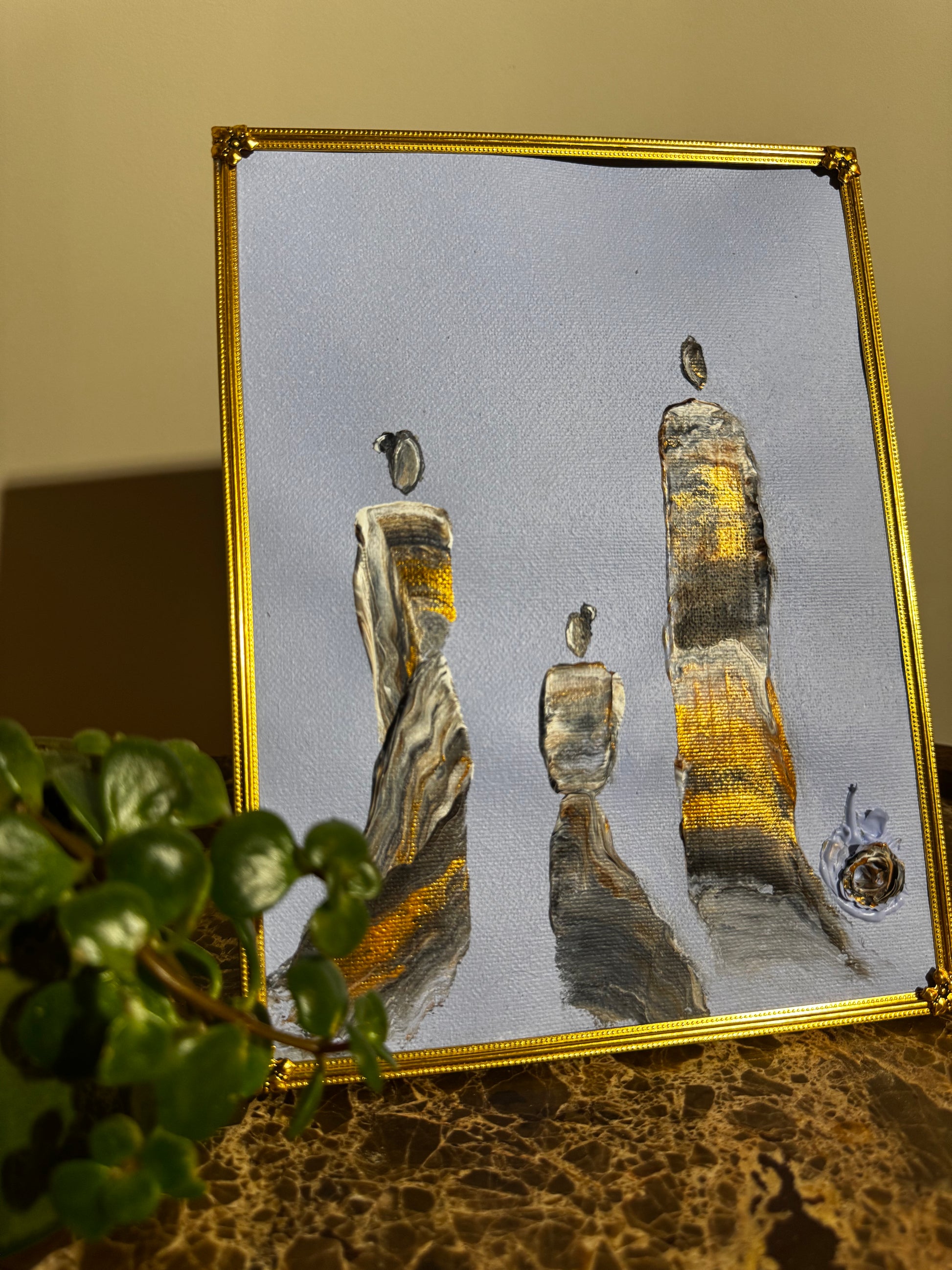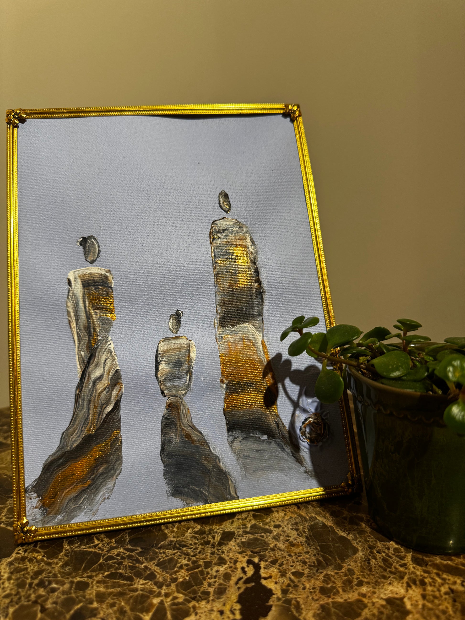This painting reflects unbreakable bond of family. Standing together through time, strength, and silence. Each form represents connection and the love that endures beyond change.