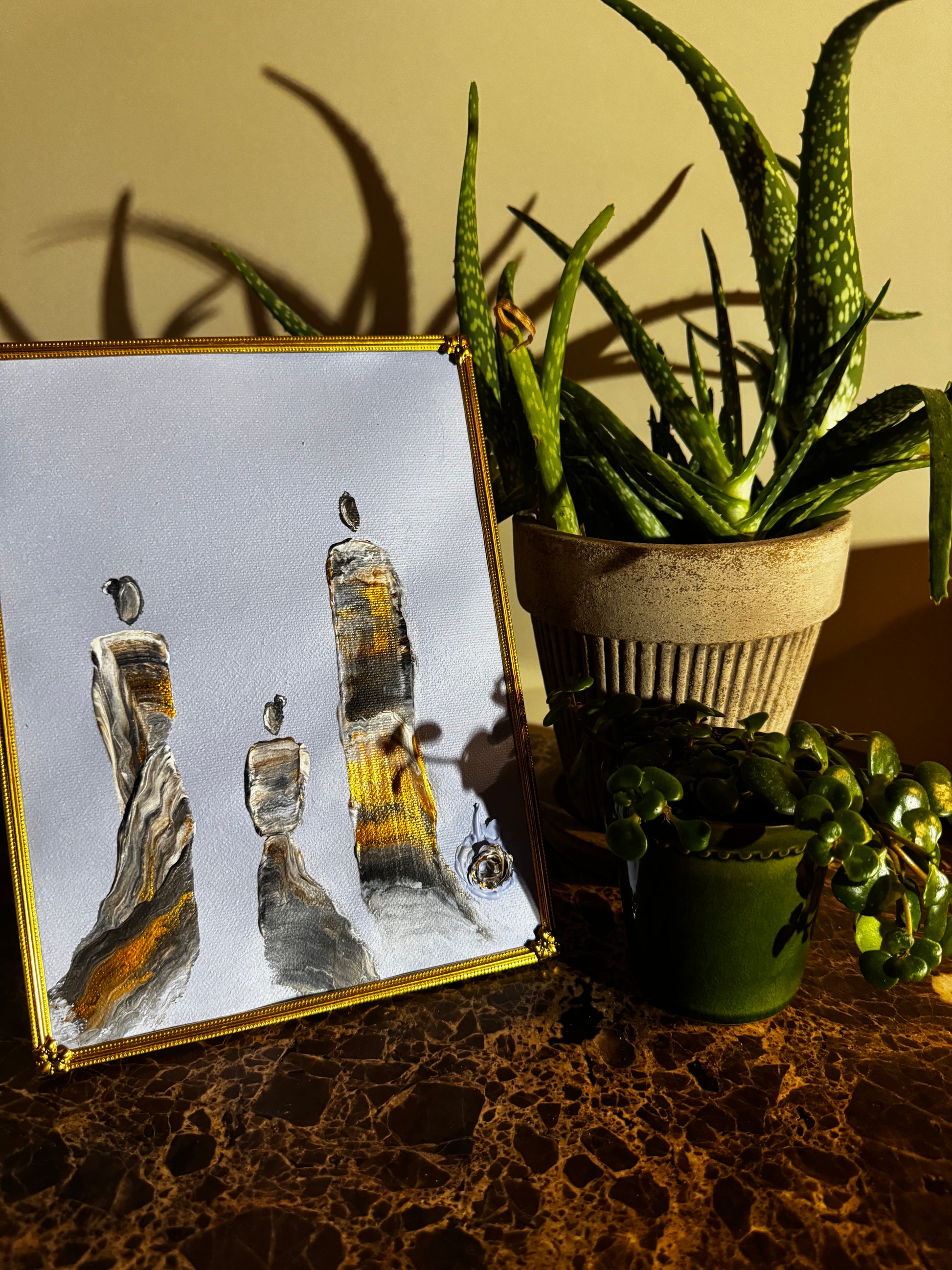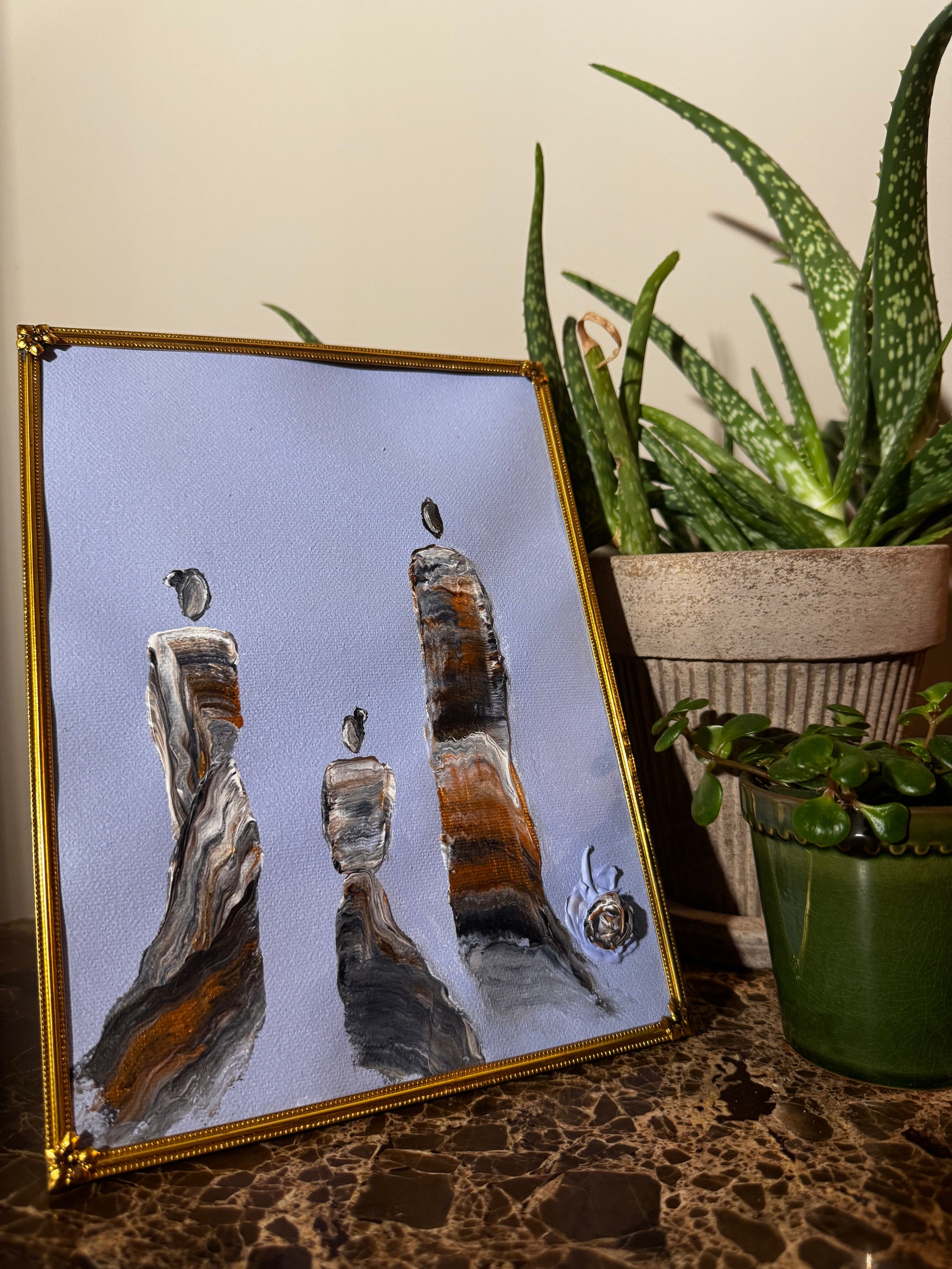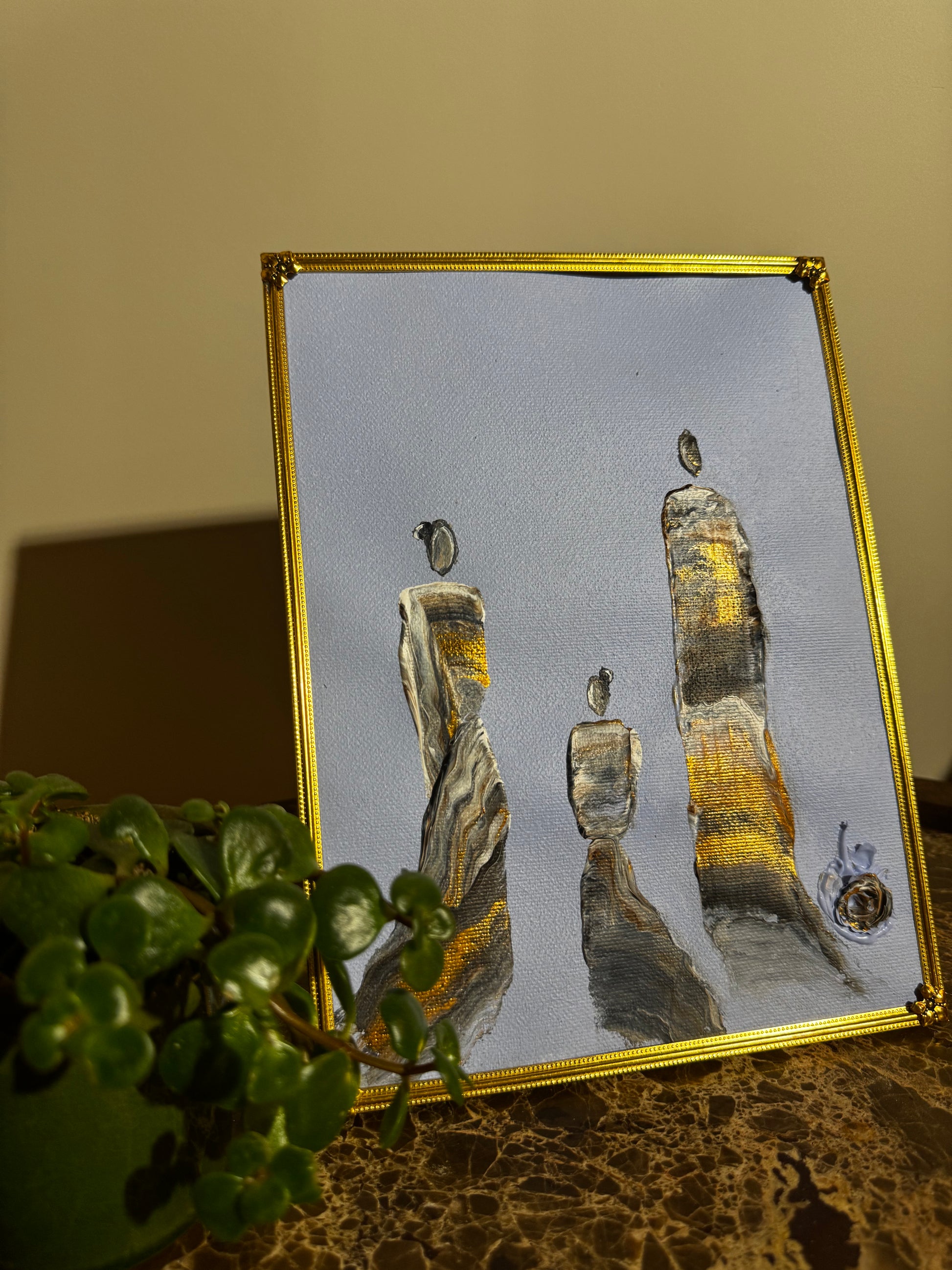 This painting reflects unbreakable bond of family. Standing together through time, strength, and silence. Each form represents connection and the love that endures beyond change.