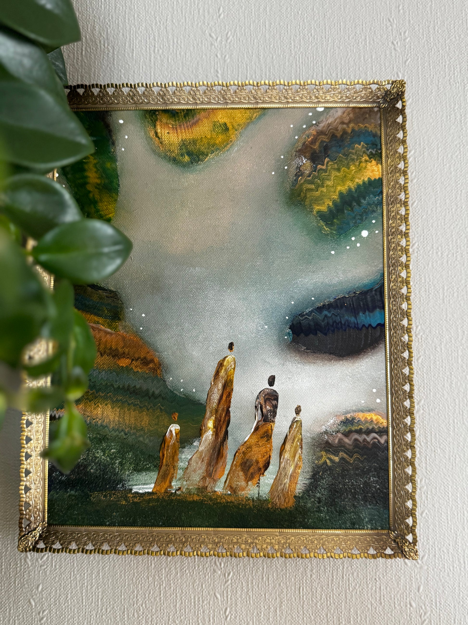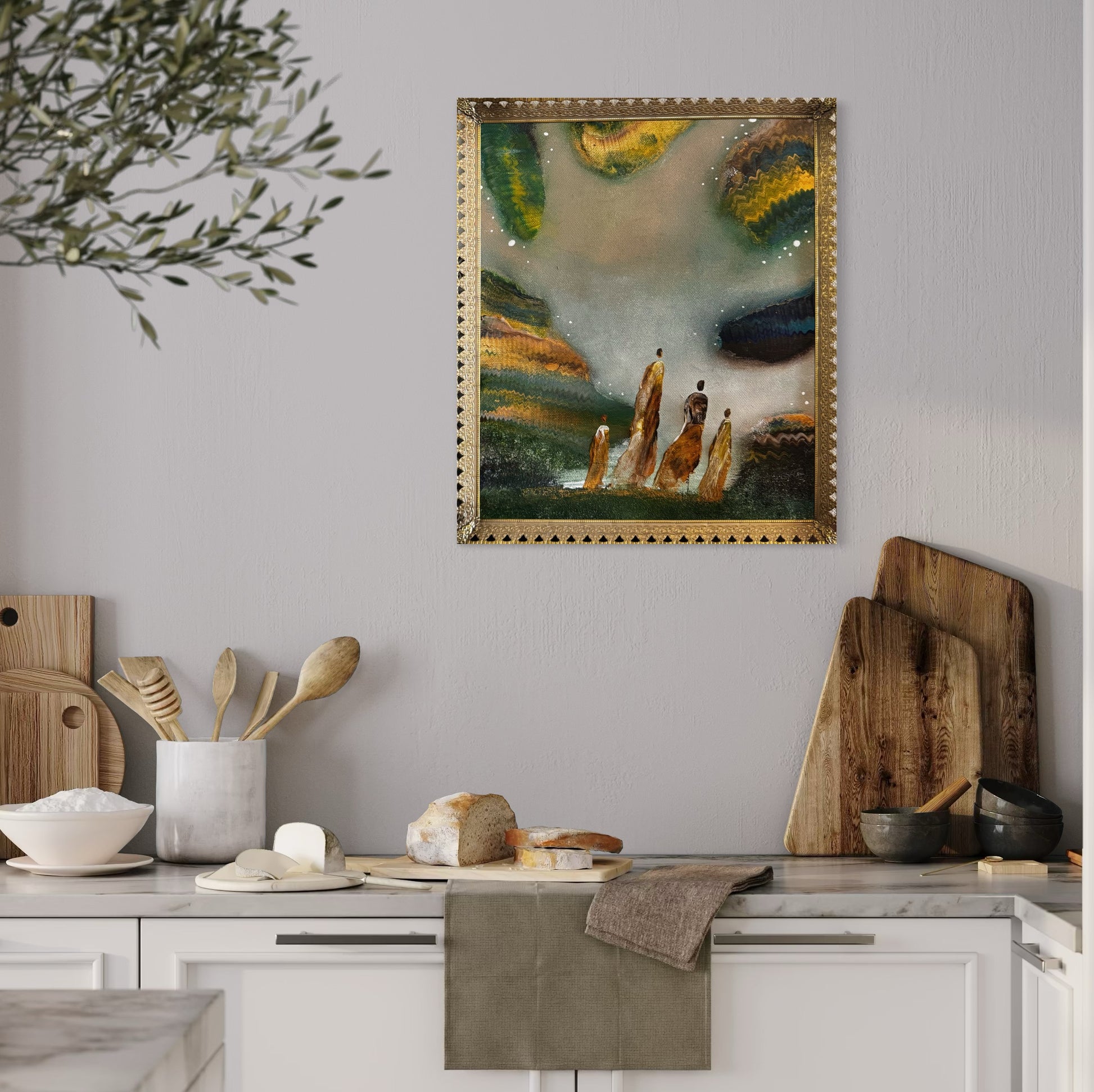 This small art piece is inspired by family life and comes with its own vintage frame.