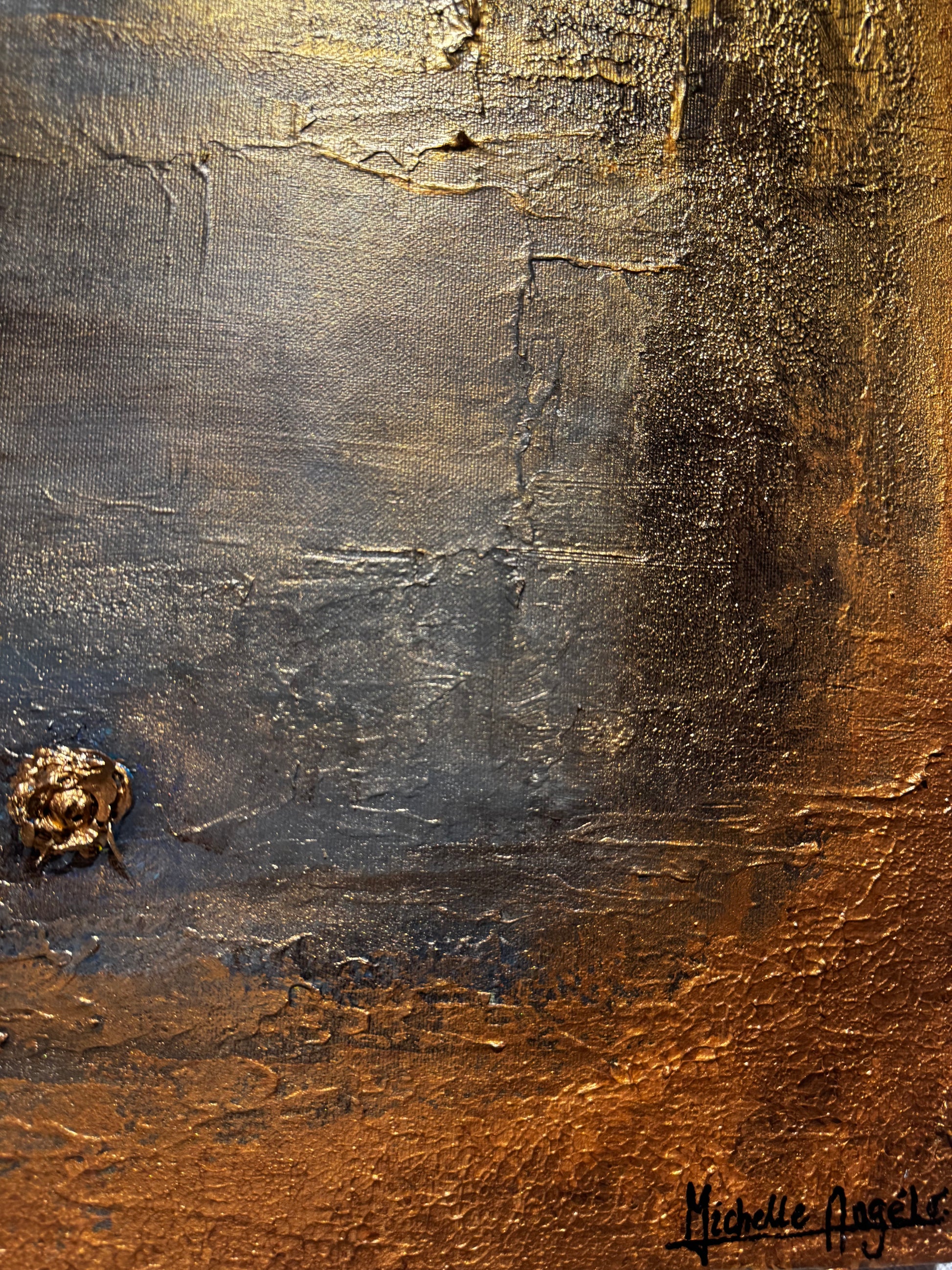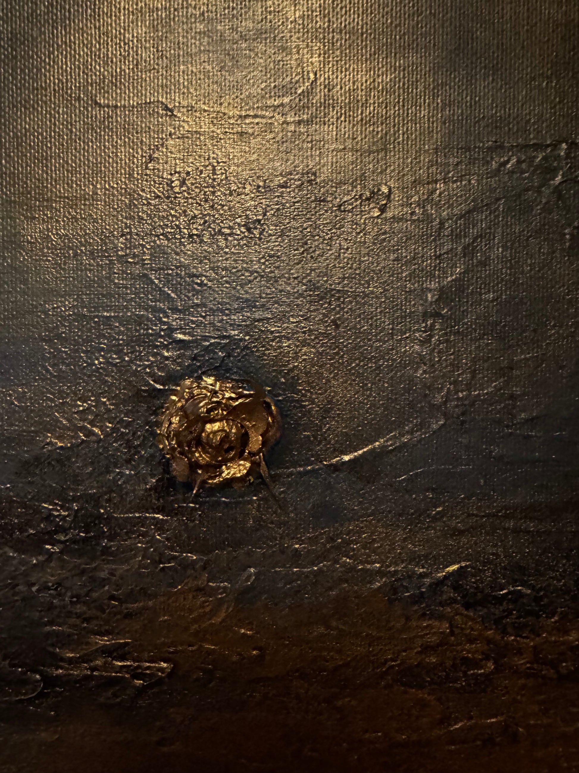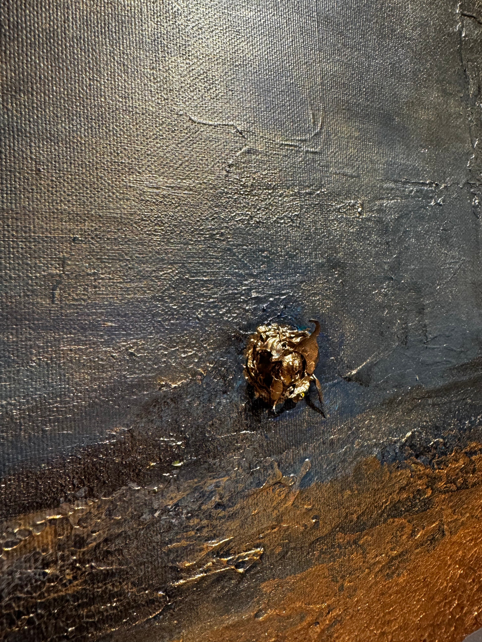 The painting reflects the stillness found at the edge of worlds, where everything fades into light.