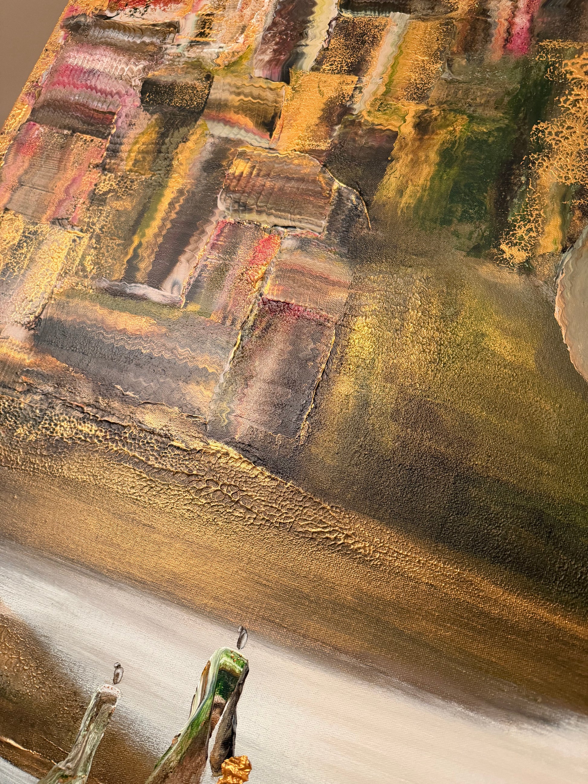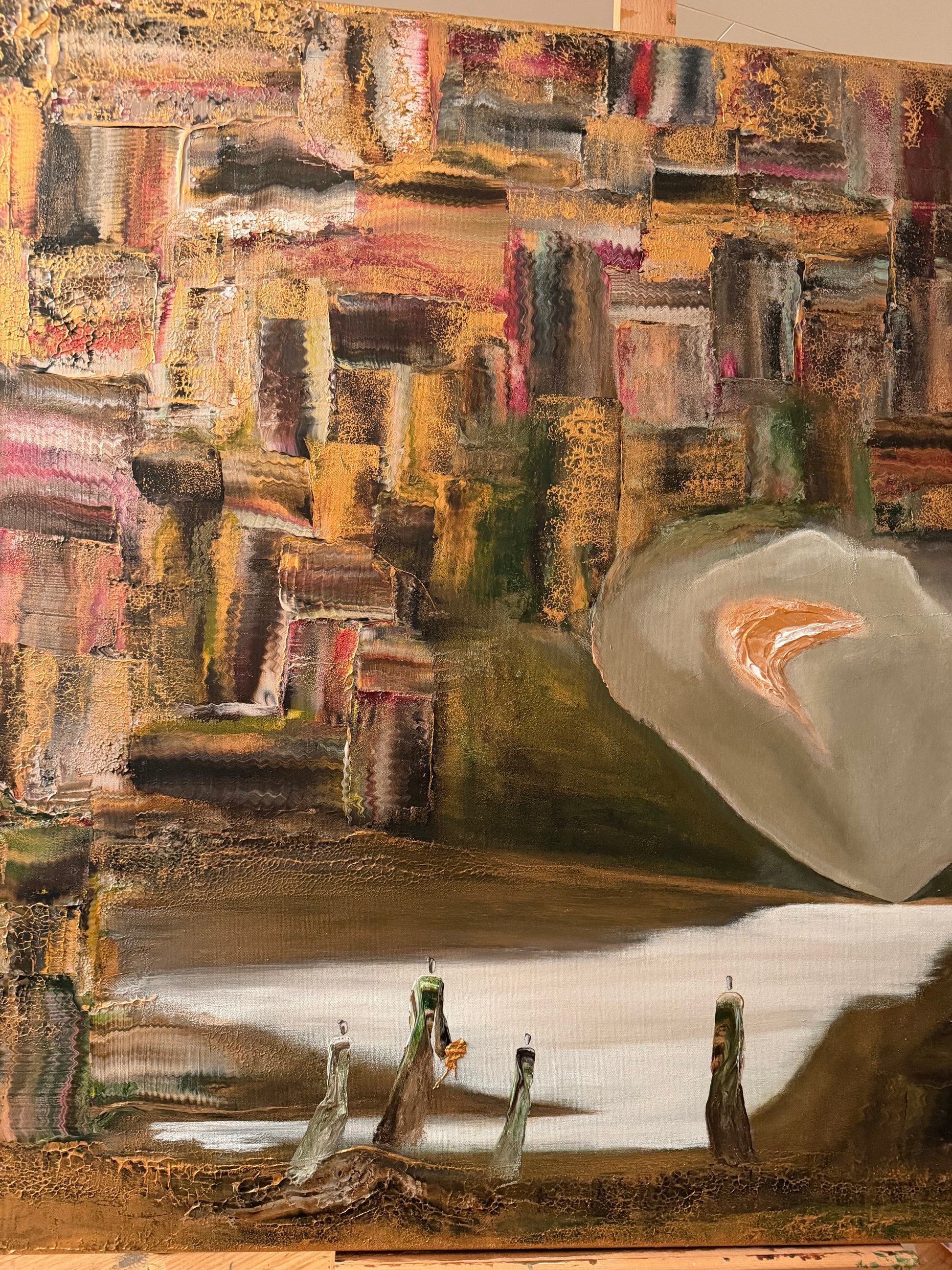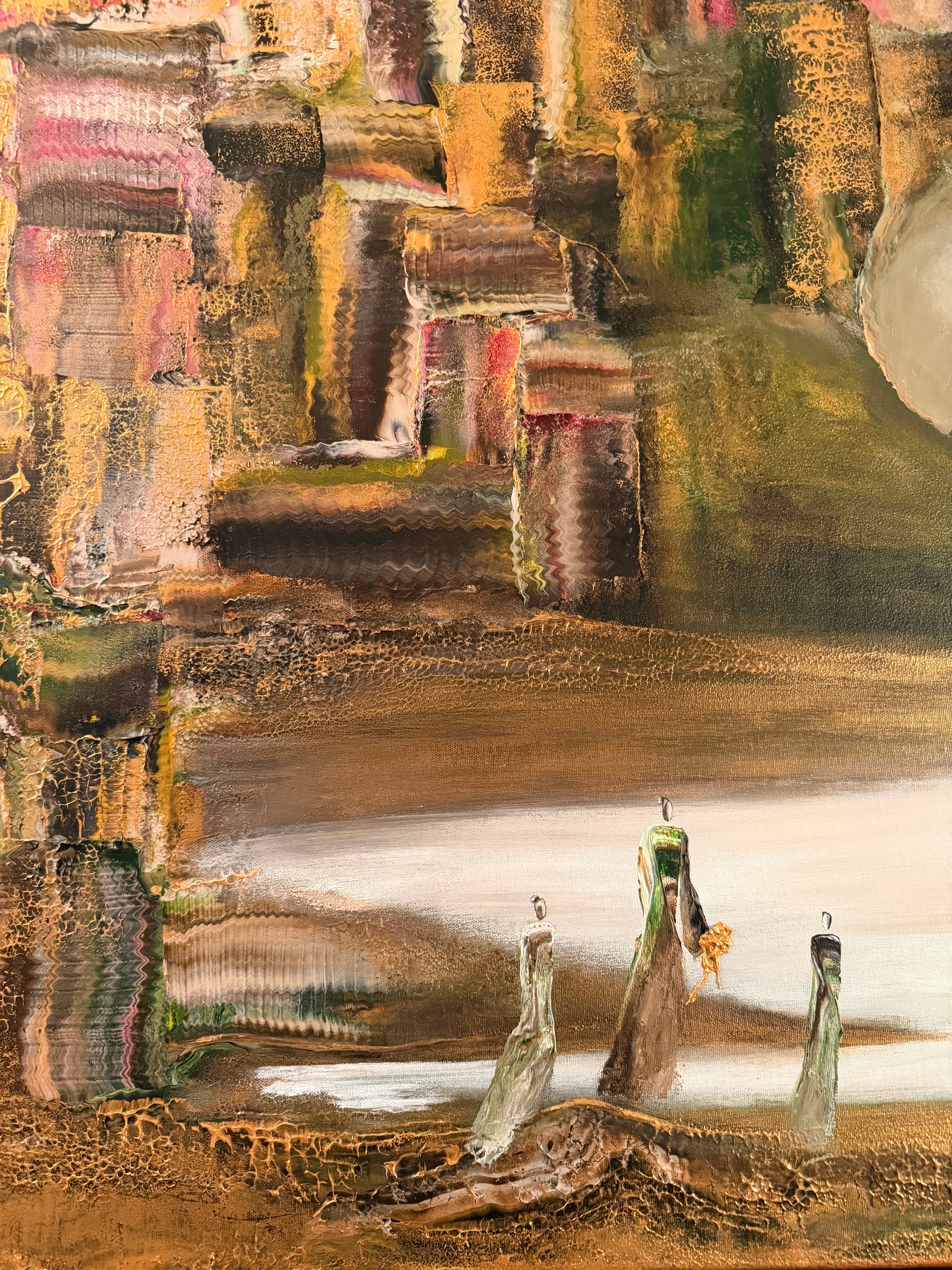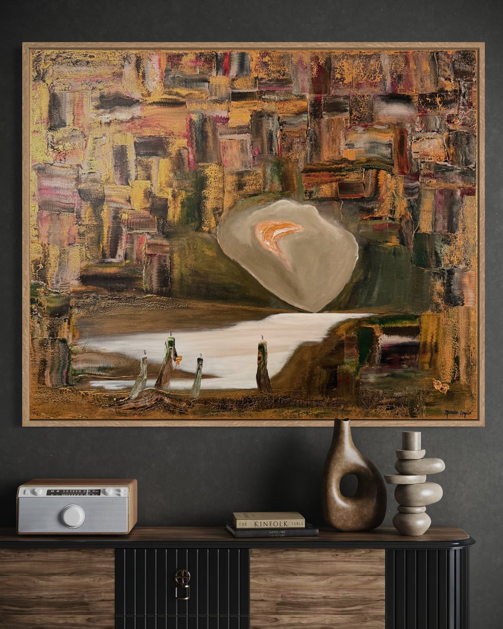Through layered textures and warm, earthy tones, the painting invites the viewer to feel the calm of companionship and the quiet power of unity.
