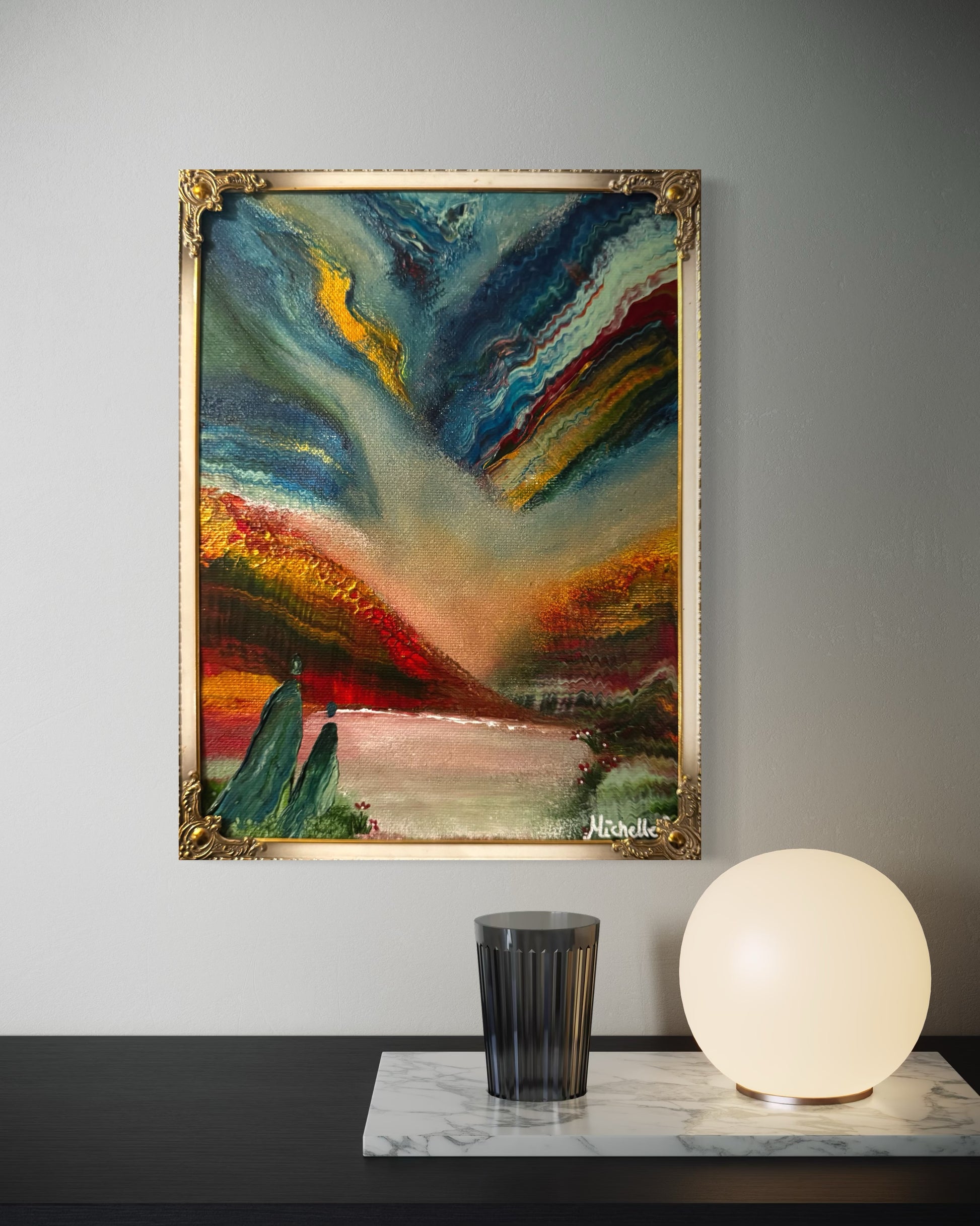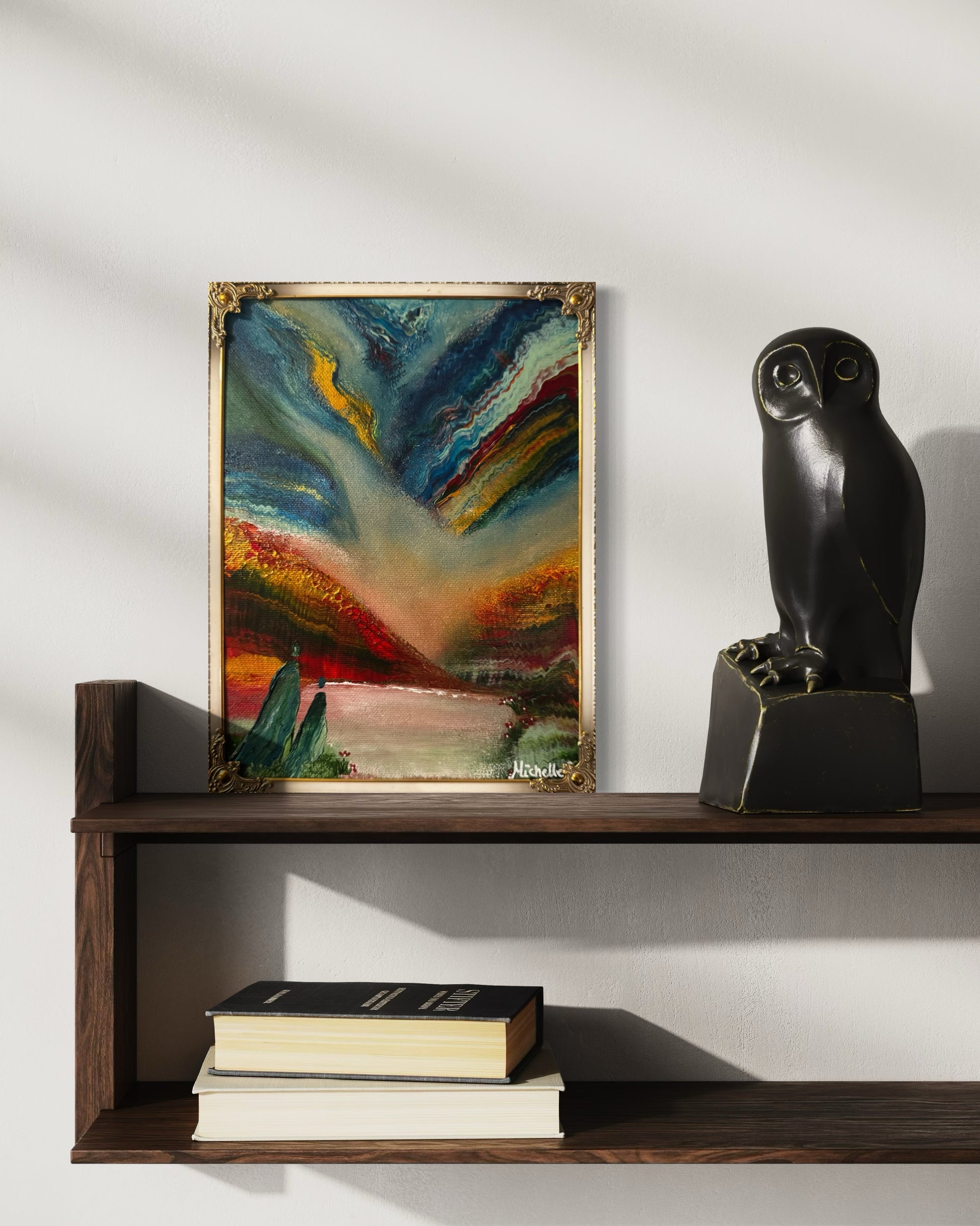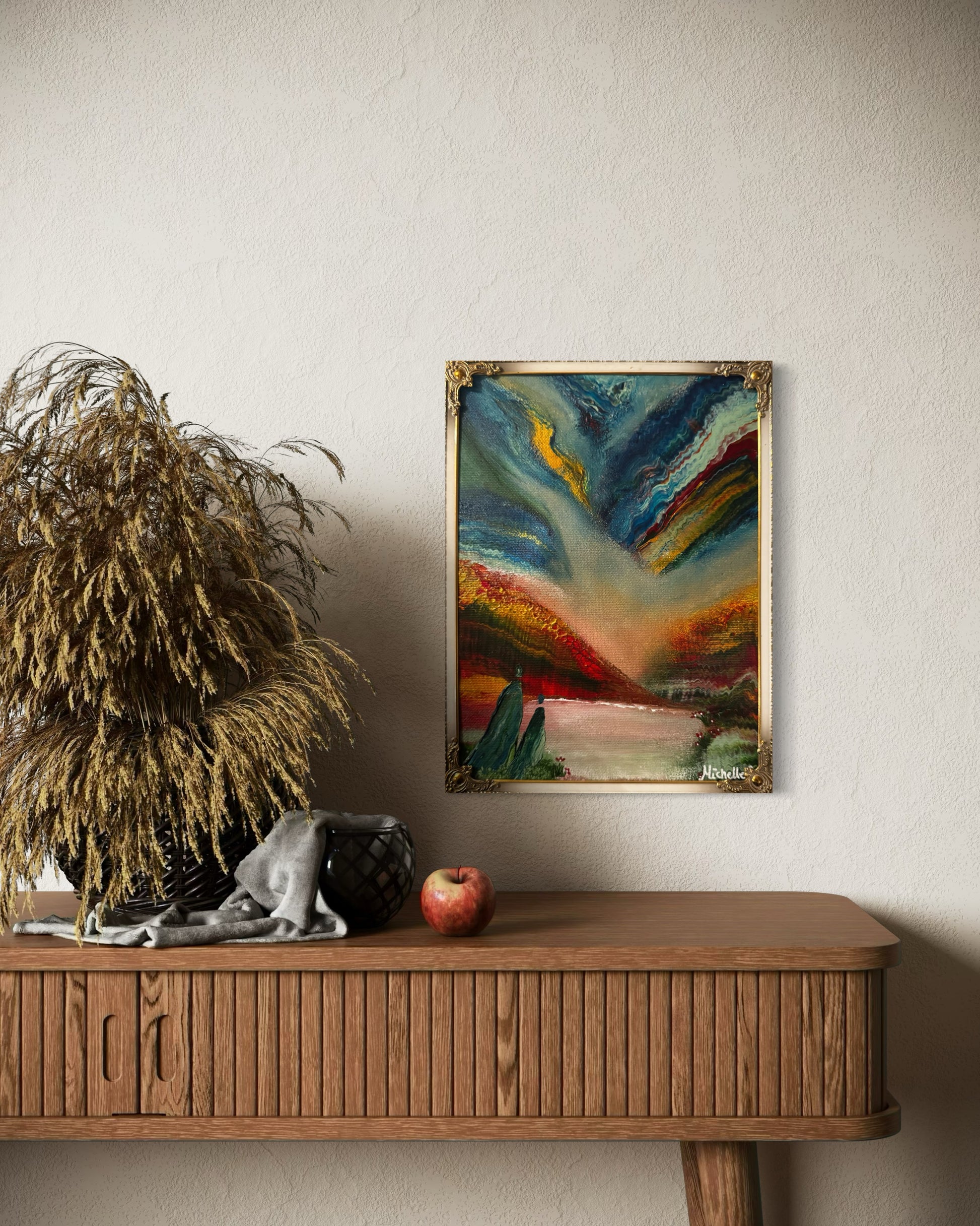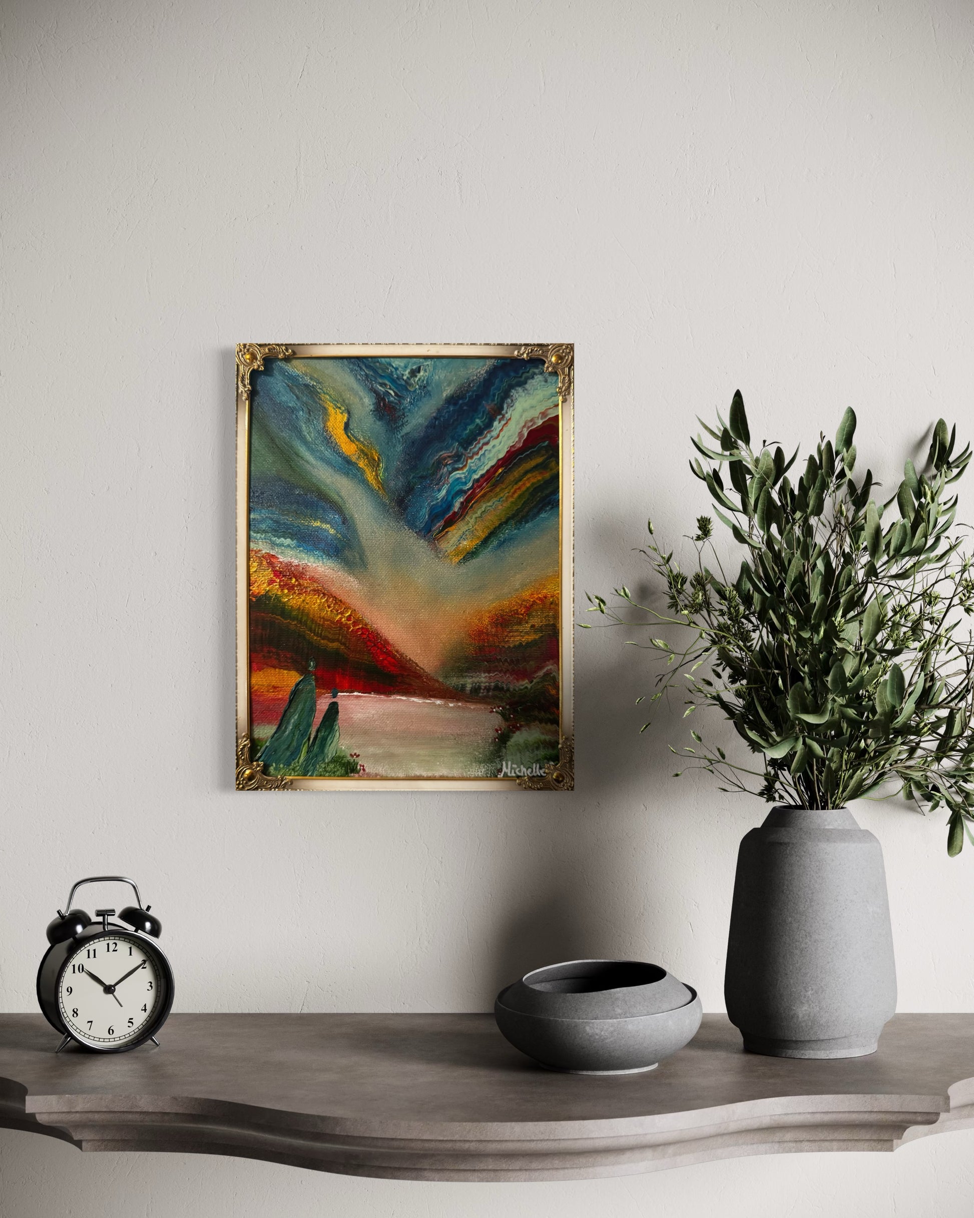 This painting captures the quiet wonder of standing beneath the northern sky - where color, light, and silence merge into one. It reflects a moment of stillness within the human soul.